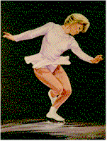 Angel with a blue dress on, Janet Lynn performs a ballet on ice.