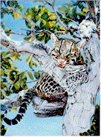 Tree Time (30" x 40")An ocelot takes to the trees, where a cooler breeze blows. But when the time comes to leave, this youngster finds himself lacking the knowledge of how to get down, and cries plaintively.