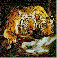 Ravenous, these two young tigers continue the species by weeding out weak or dying prey.
