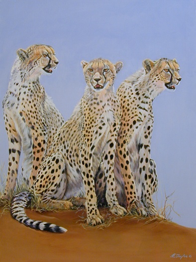 Cheetahs Three (30" x 40")Three siblings share close moments.