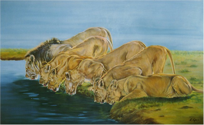 Lapping Lions © (36" x 60")