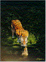 Standing in a forest pool, a tiger tanks up for the day.